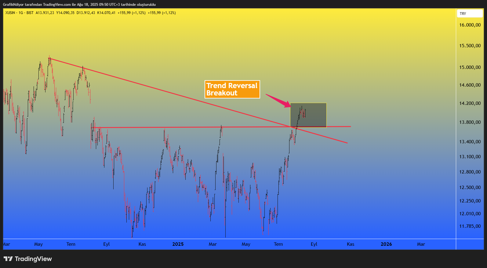 Yeni starımız Sanayi Endeksi (Xusın)olacak gözüküyor..Özellikle ,daha önce 3 kez deneyip gecemediği 13750 bölgesinin üzerine atması çok olumlu..